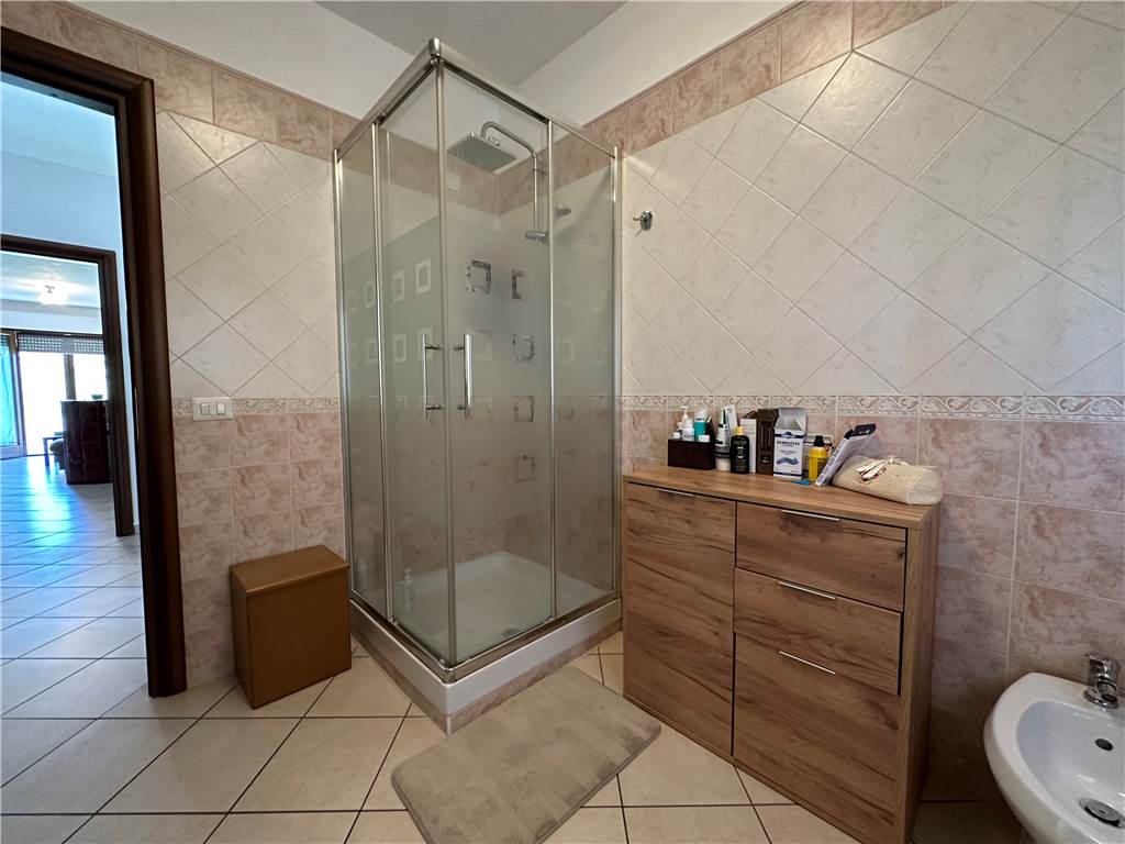 l’appartamento come nuovo, è composto da soggiorno molto ampio e luminoso, cucina abitabile, disimpegno, tre camere, due bagni.completa la proprietà un posto auto esclusivo e un grande garage di 50 m².
