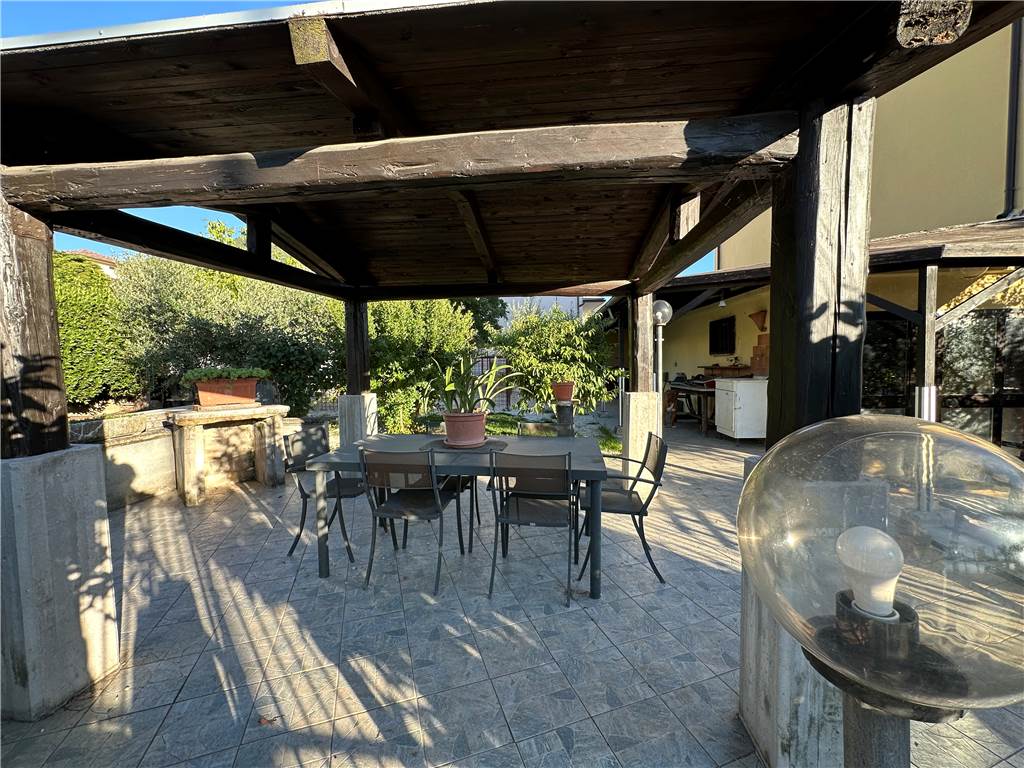 Questa proprietà è dotata di tutti i comfort moderni: riscaldamento con stufa a pellet, impianto di raffrescamento al piano terra e infissi nuovi con taglio termico. Inoltre, l'abitazione è completamente recintata con cancello elettrico, garantendo privacy e sicurezza. Il sottotetto accessibile tramite scala retrattile offre ulteriore spazio per riporre oggetti.