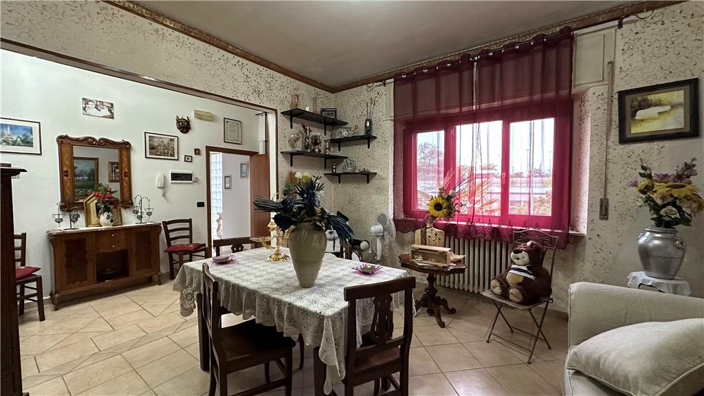 L'ingresso al piano terra ti accoglie con un luminoso soggiorno e una cucina moderna, perfetti per momenti di convivialità. Da qui, si accede al lastrico sul retro, dove puoi goderti pranzi all'aperto e relax nel giardino che circonda la casa.