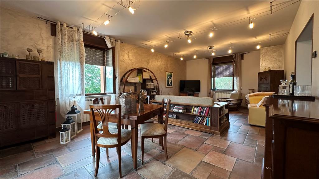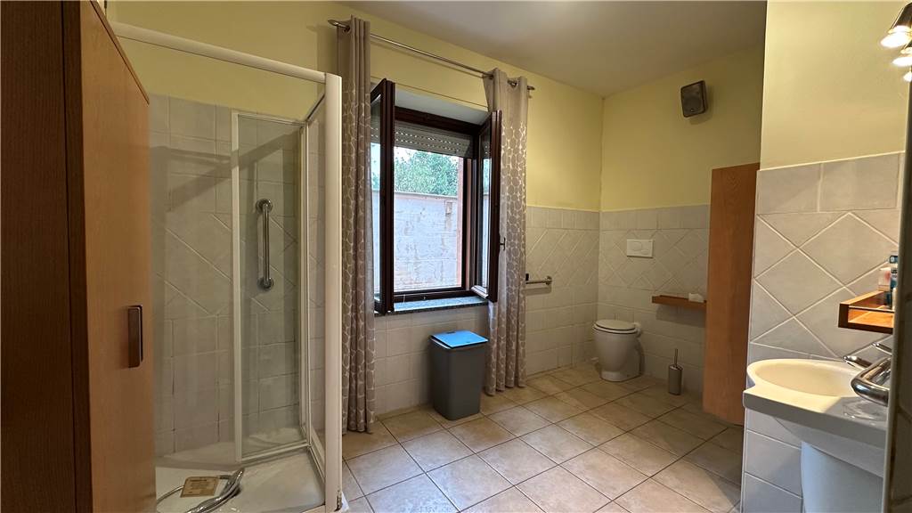 Grello, frazione colinare nei dintorni della città di Gualdo Tadino. La villa in posizione dominante rispetto al territorio circostante, è di recente costruzione circondata da un giardino ben curato, e terreno agricolo parzialmente uliveto, frutteto e alberi ornamentali. Disposta su due livelli, al piano terra troviamo un accogliente ingresso per accedere al salone molto luminoso con cucina a vista, stile americano con penisola. Proseguendo, dal disimpegno accediamo alla zona notte con tre camere da letto, due bagni, uno dei quali con idromassaggio e sauna. Garage, cantina in stile enoteca. Impianto di riscaldamento a pavimento e raffrescamento con spit. Zanzariere su tutte le finestre.