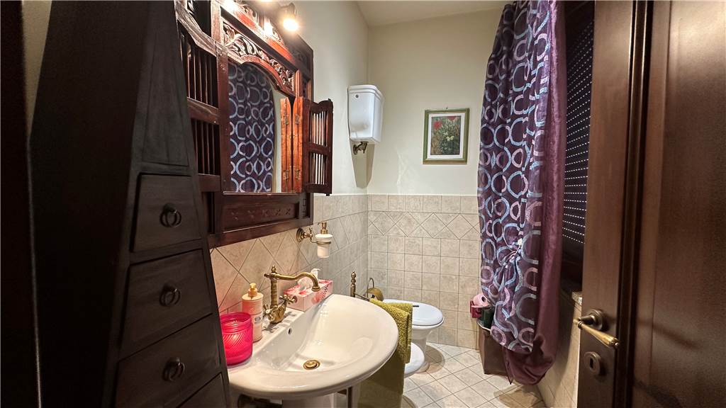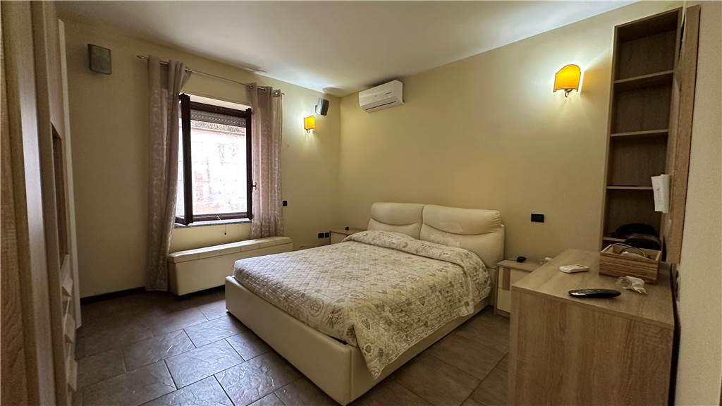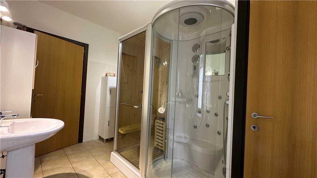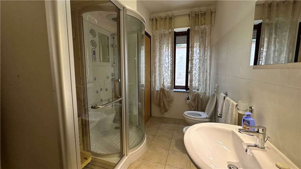 Proseguiamo nella zona notte. Dal disimpegno troviamo un bagno ospiti, quattro camere da letto, bagno, e un ripostiglio dove sono presenti gli allacci e le predisposizioni per un altro bagno. Il panorama è garantito da ampie finestre su tutti i lati, zanzariere su tutti gli affacci.