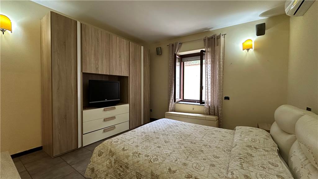 Proseguiamo nella zona notte. Dal disimpegno troviamo un bagno ospiti, quattro camere da letto, bagno, e un ripostiglio dove sono presenti gli allacci e le predisposizioni per un altro bagno. Il panorama è garantito da ampie finestre su tutti i lati, zanzariere su tutti gli affacci.