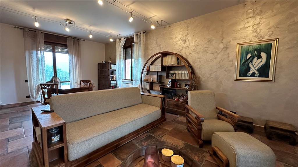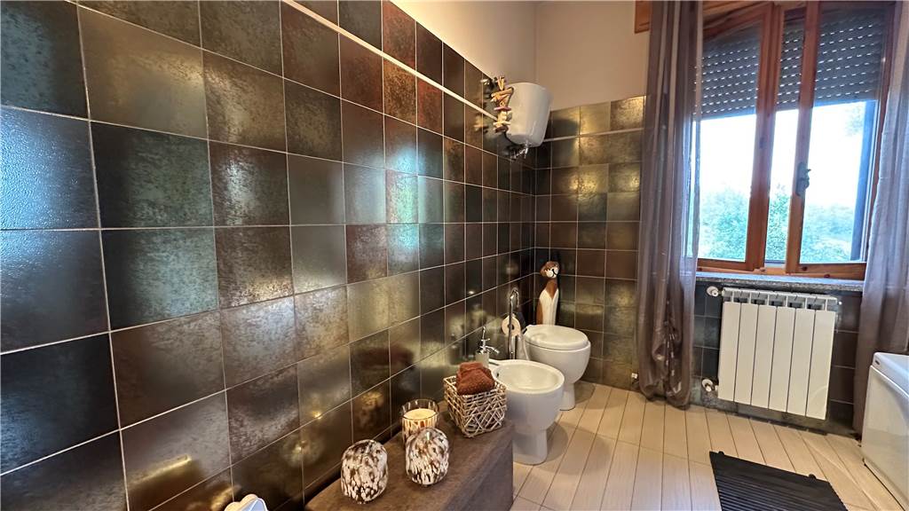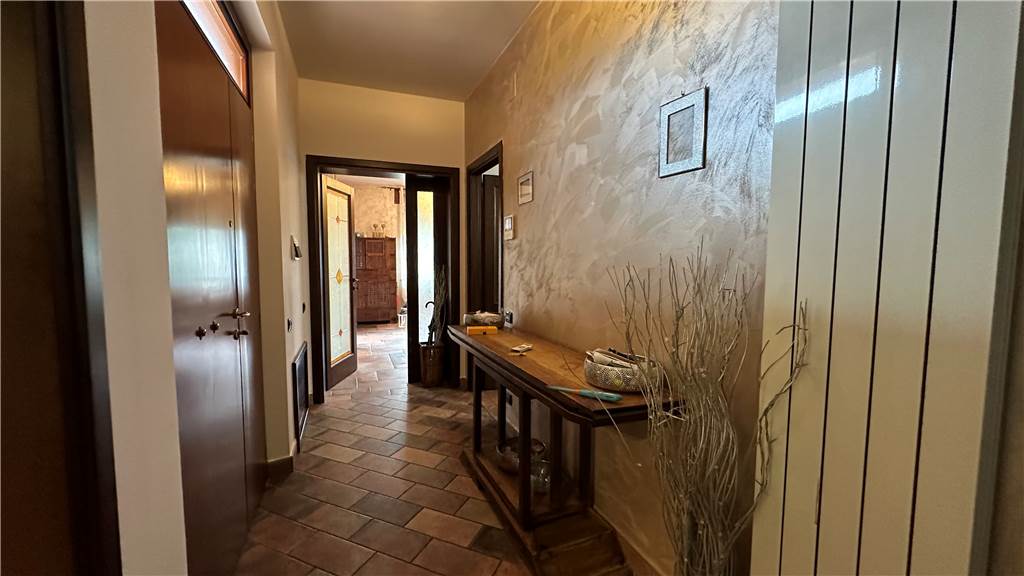 Grello, frazione colinare nei dintorni della città di Gualdo Tadino. La villa in posizione dominante rispetto al territorio circostante, è di recente costruzione circondata da un giardino ben curato, e terreno agricolo parzialmente uliveto, frutteto e alberi ornamentali. Disposta su due livelli, al piano terra troviamo un accogliente ingresso per accedere al salone molto luminoso con cucina a vista, stile americano con penisola. Proseguendo, dal disimpegno accediamo alla zona notte con tre camere da letto, due bagni, uno dei quali con idromassaggio e sauna. Garage, cantina in stile enoteca. Impianto di riscaldamento a pavimento e raffrescamento con spit. Zanzariere su tutte le finestre.